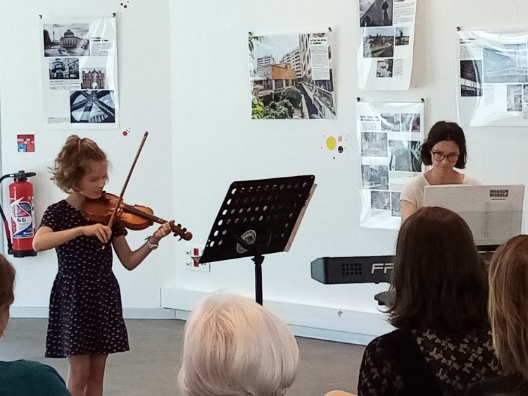 Classe de violon de Nathalie Fourchon à la médiathèque L’Ourse de Dinard.
